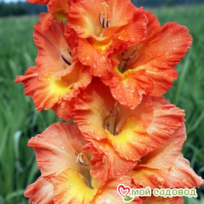 Полив. Средняя частота поливов культуры составляет раз в неделю, а летом, в жаркие дни, один раз в 3-4 суток. Поливают утром или вечером, используя около 10-12 л воды на 1 м2. Полив производят в специально подготовленные междурядные борозды, углублённые до 30-50 мм с тем, чтобы капли воды не попадали на листики гладиолусов. Без регулярного полива цветы быстро завянут. По завершении процедуры кусты окучивают. Раз в декаду обязательно производят рыхление почвы.