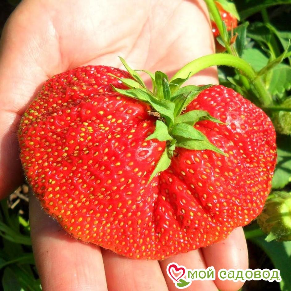 Густой куст с заметными тёмно-зелёными листьями, вырастающий до 20 см в высоту. Даёт весьма крупные белые цветы, имеющие лёгкий розоватый оттенок, плоды же растения порой достигают размеров человеческой ладони. Форма округло-коническая, в размерах при первых сборах плоды достигают длины в 7 см, а также веса до 50 г. Сами по себе ягоды ярко-красные, плотные, с сочной мякотью, что говорит и об их превосходном сладком вкусе. Посадка и уход за клубникой Посадка: осенью (с середины августа до середины октября) и ранней весной Освещение: яркий солнечный свет Почва: легкая – суглинок, супесь, чернозем или лесные, богатые органикой грунты с водородным показателем pH 5,7-6,2 Полив: утренний, с конца апреля – один раз в 10-12 дней, расходуя на каждый м² участка 10-12 л воды Подкормки: минимум три раза в год: ранней весной, в период бутонизации и в августе Обрезка: когда листья начнут желтеть, покрываться пятнами и сохнуть, их обрезают Размножение: усами (розетками), делением куста В нашем интернет-магазине вы сможете купить Саженцы клубники Так же возможно вас заинтересуют Клубника Альба и Клубника Аргентера.