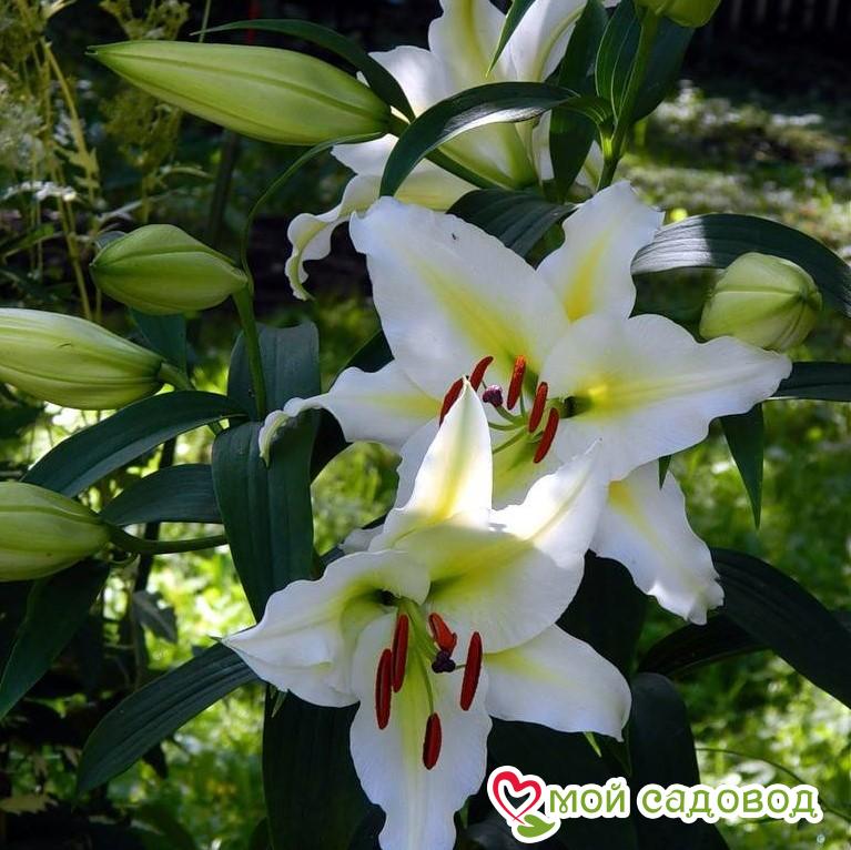 ОТ-гибриды (лилейные деревья) – это гибриды, полученные в результате скрещивания восточных гибридов с трубчатыми лилиями. Ценятся за свою необычайную красоту, обильное цветение (на одном цветоносе может располагаться до 40 цветков), прочность стеблей и необычайно высокий рост. Цветки могут быть как кубковидными, так и пониклыми. Обладают ярко выраженным ароматом, зацветают раньше других сортов. Посадка лилии: Глубина посадки лилии зависит от почвы. Если почва легкая – можно углубить на 12-13 см, что составляет 3-4 диаметра луковицы. Если же почва глинистая или тяжелая, достаточно двух диаметров, глубина лунки не более 5 см. В выкопанную ямку насыпьте слой песка, установите луковицу донышком на песок, присыпьте сверху остатками грунта, сверху замульчируйте. Уход за лилией: Пышных бутонов у лилий можно добиться, соблюдая обычные правила ухода: в первый год лилиям не нужна весенняя подкормка, удобрения вносятся разово за сезон, после цветения. Но это лишь в том случае, если перед посадкой вносилось удобрение. Перед началом цветения высокорослые сорта рекомендуется подвязать. После цветения засохшие бутоны удаляют. Полив умеренный: лучше не долить, чем перелить. Если цветок начал чахнуть и имеются подозрения на перелив – смешайте по столовой ложке речного песка и древесной золы, высыпьте под цветок и не поливайте ближайшую неделю. Полив лилии важно проводить под корень, старайтесь исключить попадание воды на листья, это провоцирует ожоги на солнце и распространение грибковых заболеваний.