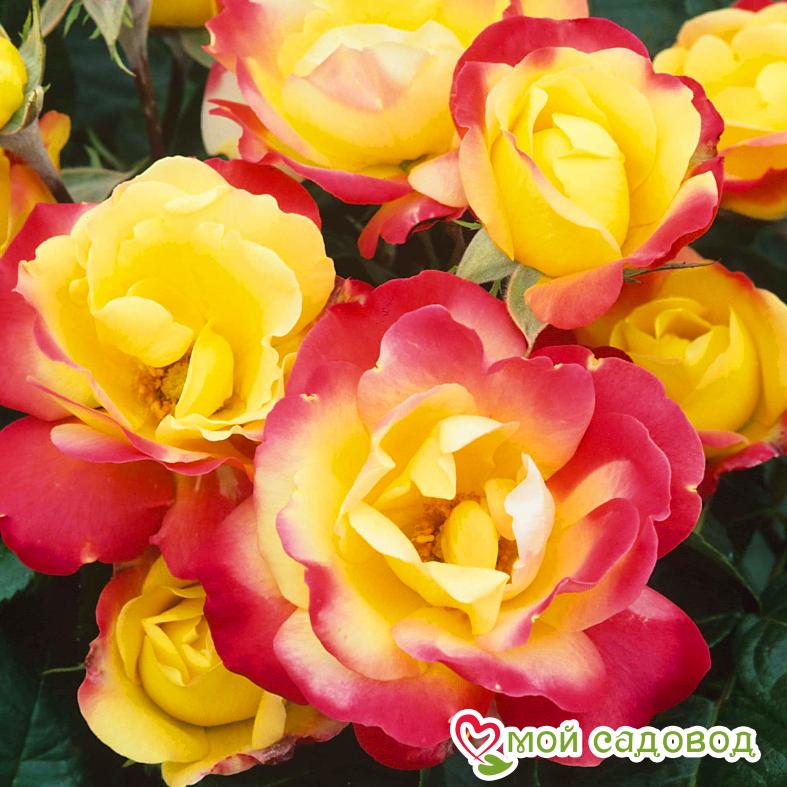 Главное преимущество данного растения перед другими розами из группы флорибунд состоит в наличии на сильном, шаровидном кусте с мощными побегами совершенно очаровательных цветов. В стадии бутонов они имеют желто-оранжевый окрас, а когда раскрываются, приобретают сначала нежно-розовый, а чуть позже — насыщенный малиновый оттенок. Такая изменчивость цветовой гаммы позволяет получить удовольствие от созерцания декоративного многолетника на протяжении всего периода его цветения. Кстати, именно за счет столь неординарной окраски растение и получило свое запоминающееся название.