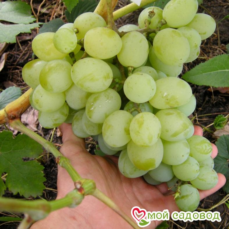 Виноград Первозванный – хороший сорт, созревающий в первых числах августа. Достаточно большие цилиндрические грозди, средней массой 500 г. Янтарно-белые при свете солнца ягоды, весом 8-9 г, не повреждаются осами, поскольку имеют плотную кожицу, имеет много рудиментов. Устойчивость к болезням средняя. Магазин Мой Садовод, рекомендации по уходу Уход за виноградом сводится к регулярным поливам в сухую погоду, подкормкам и формированию куста. Для подкормки используют минеральные и органические удобрения (перепревший навоз, компост). Ранней весной кусты виноград поливают полным минеральным удобрением, растворенным в воде, перед цветением такую подкормку повторяют. Перед созреванием вносят фосфорно-калийные удобрения, а после сбора урожая проводят подкормку калием для повышения зимостойкости растений. Кроме того для лучшего вызревания лозы рекомендуется удаление пасынков и прищипывание верхушек в начале сентября. Формирование куста Винограда. Для формирования виноградных кустов необходимо установить надежную опору. Самая простая представляет собой два столба с несколькими рядами проволоки между ними. По мере роста побеги подвязывают к проволоке, задавая им нужное направление. Формирование куста винограда начинают с первого года, оставляя не более двух здоровых побегов у основания, остальные выламывают. На второй год на кусте оставляют по три почки на каждом побеге, на третий год на каждом плече оставляют 2-3 сильных побега, остальные удаляют. Пожалуйста, помните, что транспортировка и пересадка — стресс для растения. Перед высадкой в открытый грунт обработайте корневую систему стимулятором роста. С заботой о растениях, Мой Садовод. Вы можете купить саженцы винограда Первозванный в нашем интернет магазине недорого с доставкой на дом. Так же вас возможно заинтересуют другие сорта столового винограда: виноград ландыш и виноград ливия. Если есть вопросы звоните. В нашем интернет-магазине вы сможете купить Столовые сорта Так же возможно вас заинтересуют Виноград Гала и Виноград Вега Запорожская